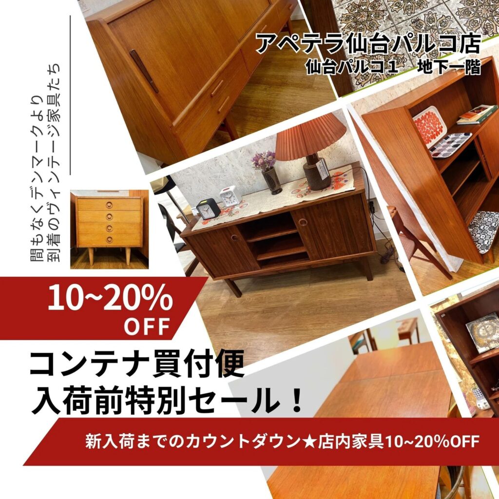 • 新入荷到着前&新生活応援ヴィンテージ家具セール|北欧ヴィンテージ家具を3月16日から特別価格セール開催|アペテラ仙台パルコ店|2026/3/16